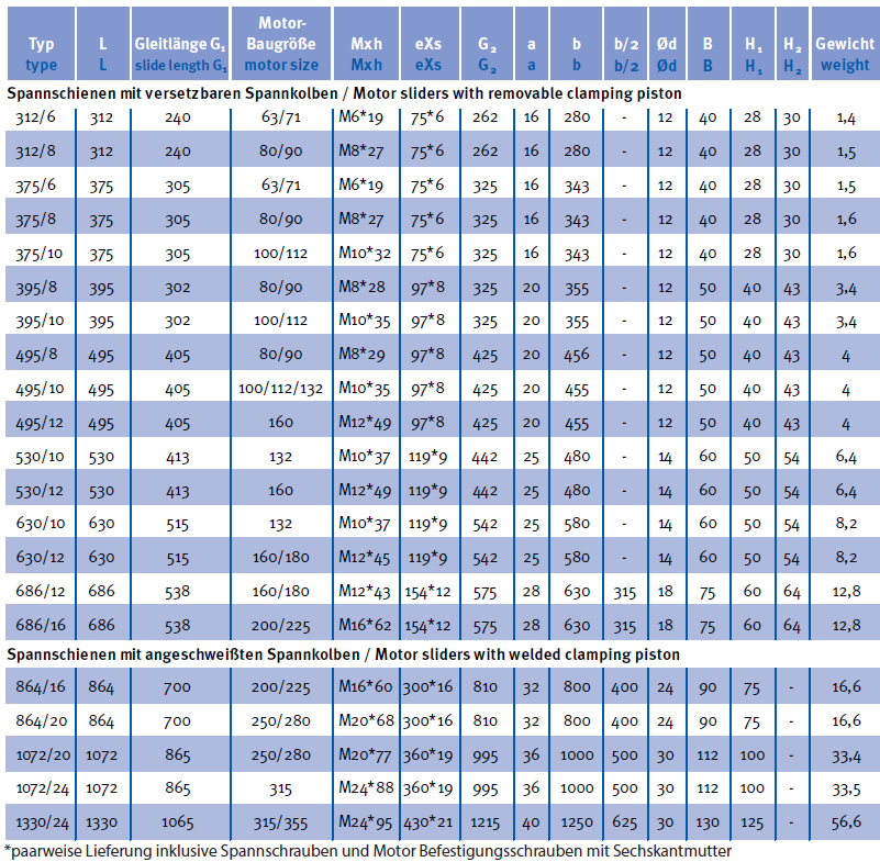 Motor Spannschienen für Motoren Baugröße ab 63 :